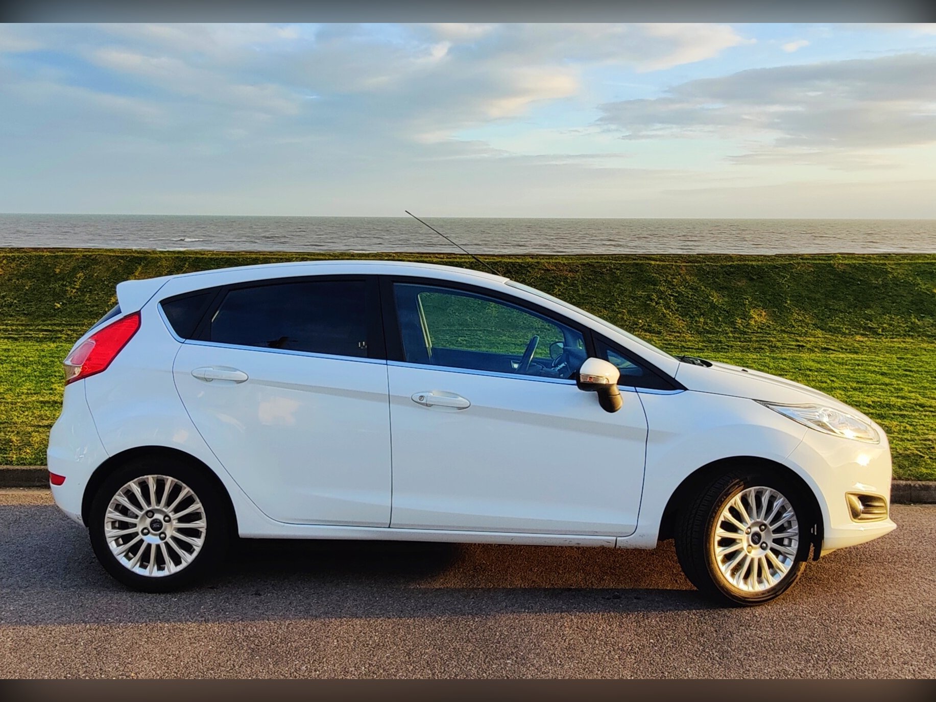Absolutely unmarked Fiesta finished in Polar White with smart dark grey interior.